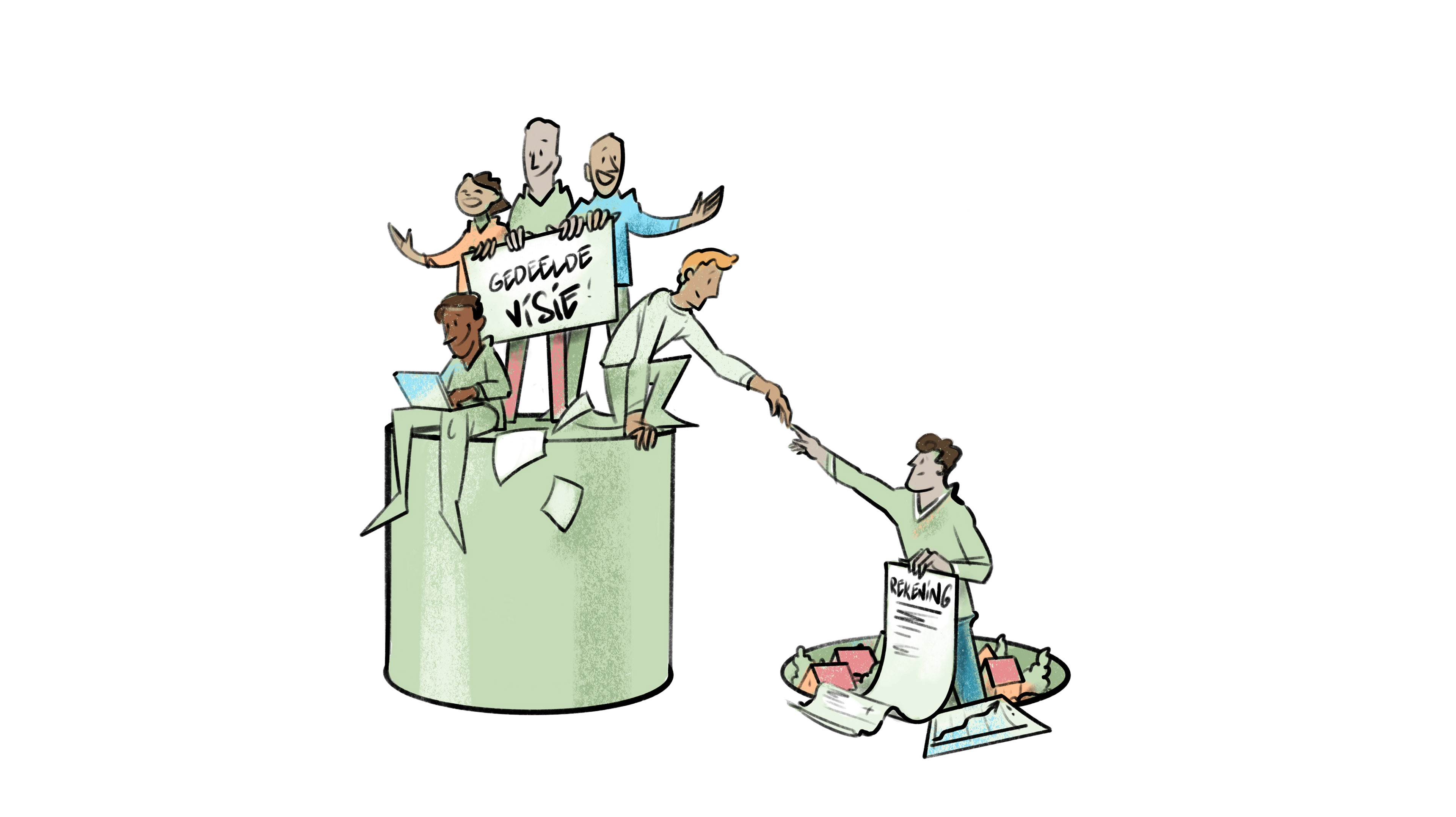 Op het Congres Regionale Energiestrategie en Warmte in 2024 werd een paneldiscussie gehouden over de dreigende pauze in de warmtetransitie en hoe hiermee om te gaan. De illustratie geven de verschillende opties weer.